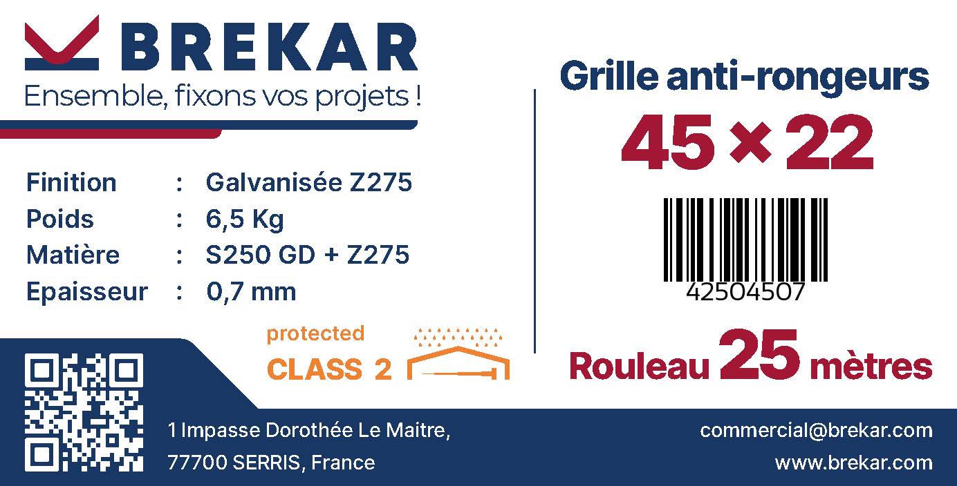 Rouleau de 25 m de grille anti-rongeur en 67 mm de large, pliable en cornière de 45 x 22 mm